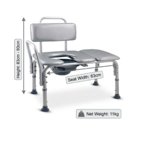 This Bath Bench is a lightweight aluminum transfer bench designed to assist individuals with limited mobility in safely entering and exiting a bathtub. It features a U-shaped seat design to facilitate personal hygiene and adjustable legs to fit various tub heights. It uses angled legs with non-slip rubber tips (ferrules) to provide a stable base and prevent the bench from sliding on wet surfaces.