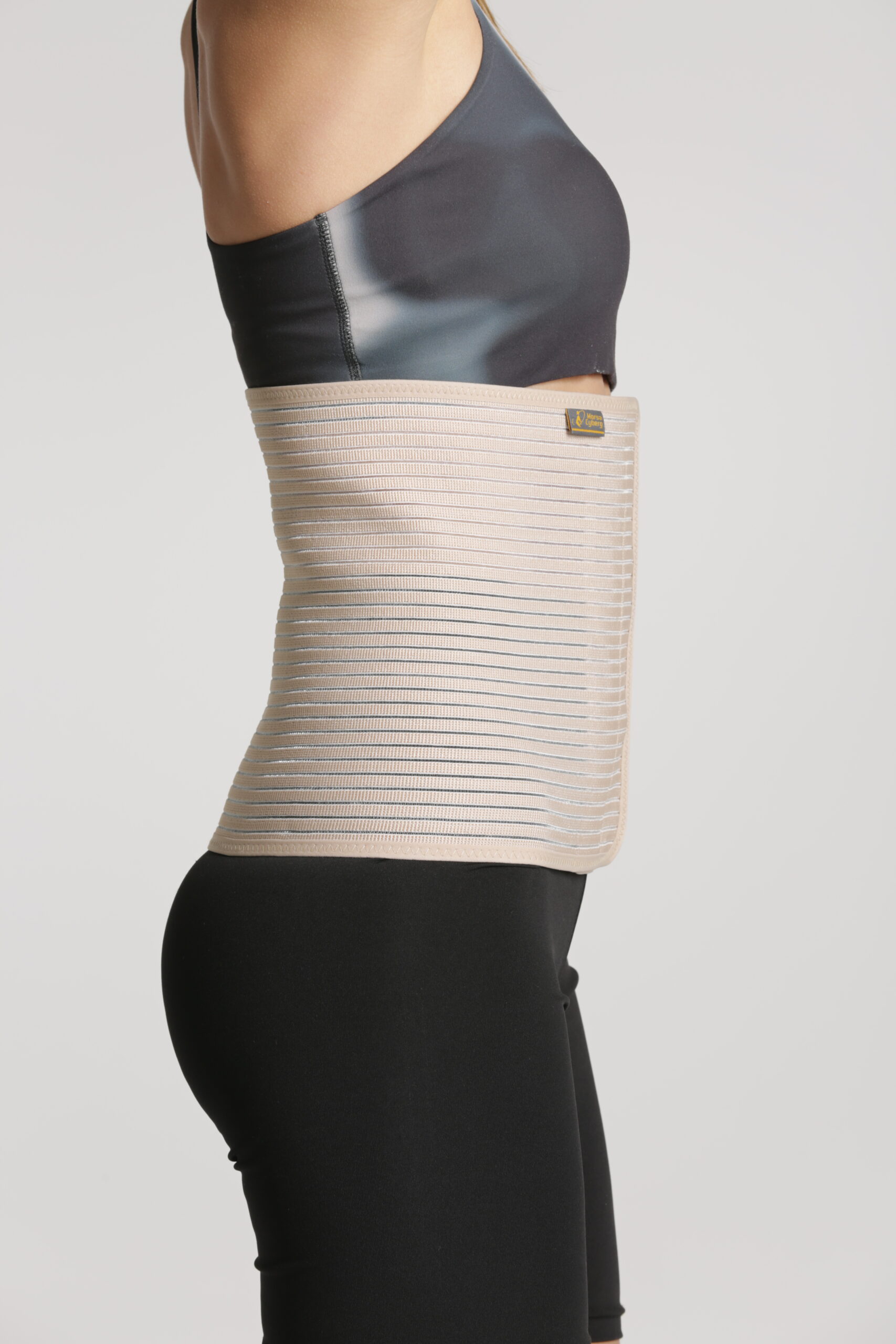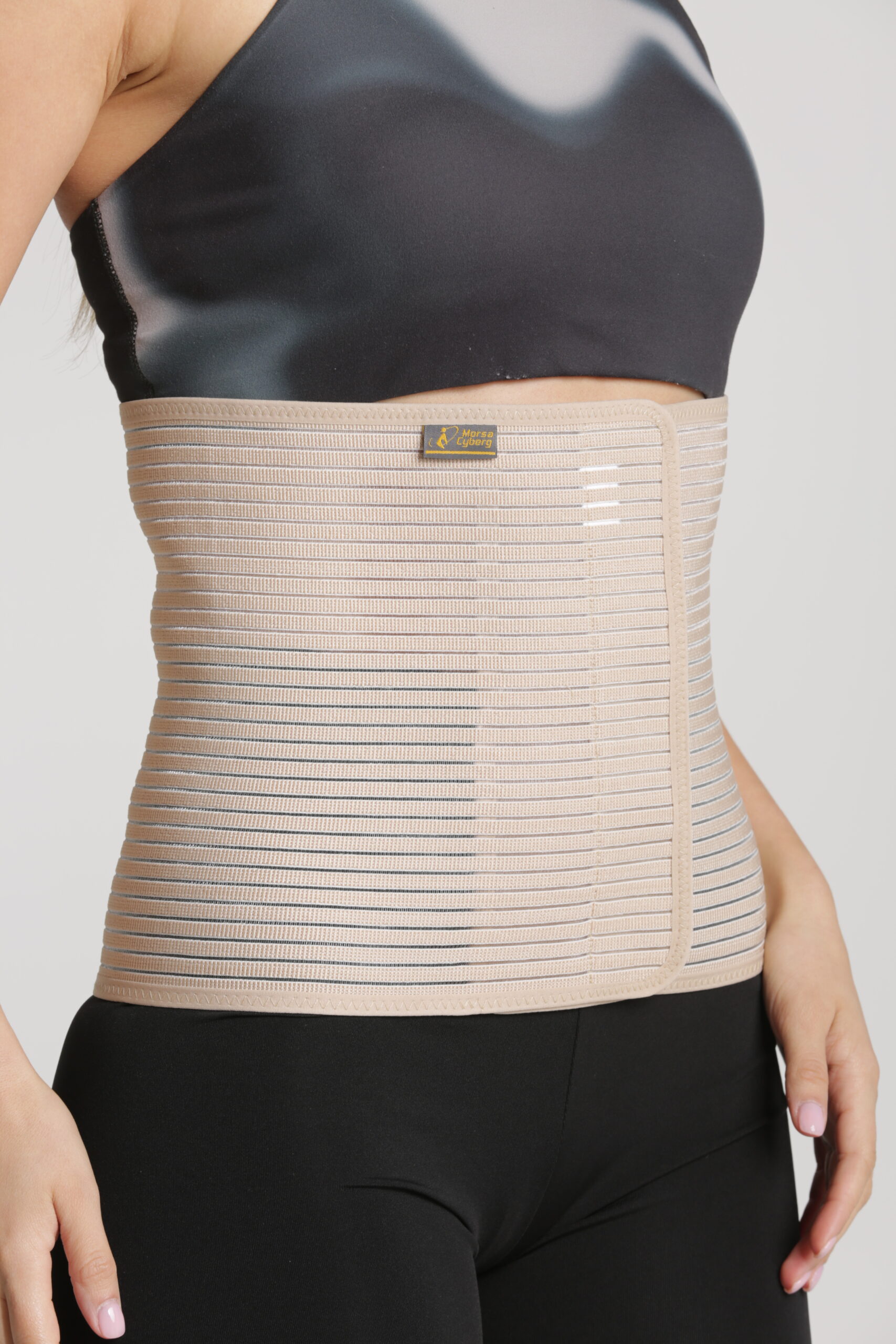 An abdominal corset (binder) is a supportive, typically elastic garment designed to provide compression to the abdomen, used for post-operative recovery after C-section, hernia or liposuction, post-partum support, and managing hernia discomfort. It reduces pain, minimizes swelling (edema), supports weakened abdominal muscles, and improves posture.
