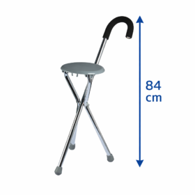 Crutch With Seat is a 2-in-1 mobility aid that functions as a walking stick and converts into a tripod seat for resting. It is designed for seniors or individuals in rehabilitation who require periodic breaks during walks. Includes a foam or contoured handle to reduce hand fatigue during extended use. The folding mechanism allows it to transition from a seat to a standard walking stick in seconds, making it suitable for travel, shopping, or outdoor events.