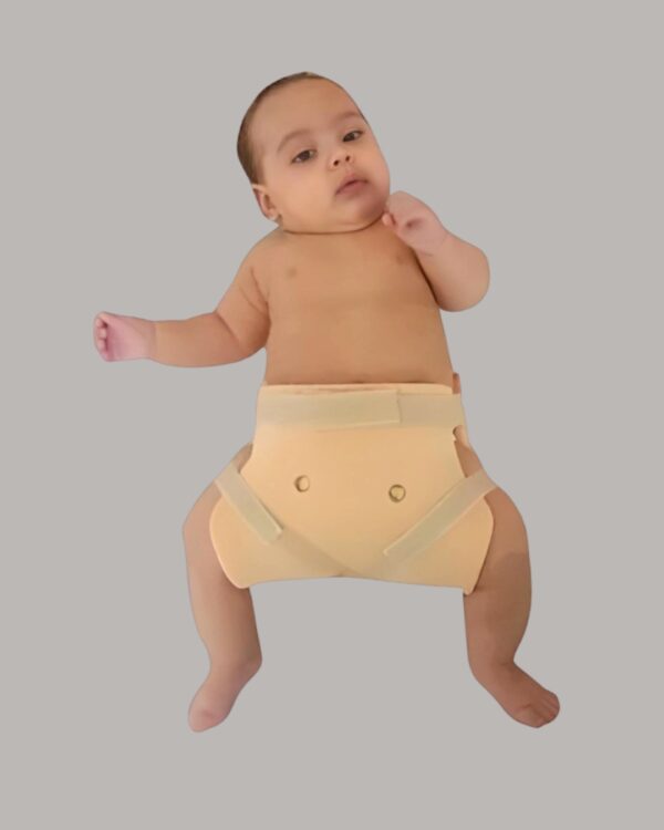This orthosis provides a non-surgical and gentle solution for hip instability in infants. By maintaining the correct anatomical relationship between the femoral head and the hip socket for an extended period, it encourages the joint to mature and develop naturally.