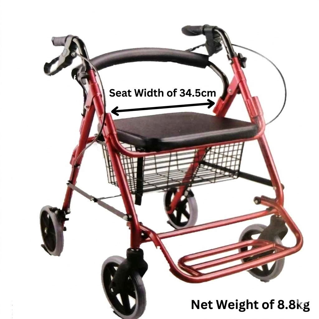 The AKM Rollator Walker FS965LH-B is a versatile mobility aid that functions as both a 4-wheel rollator and a resting chair for seniors or individuals with reduced mobility. It is designed with a lightweight aluminum frame and features integrated hand brakes and height-adjustable handles to ensure user safety and comfort.
